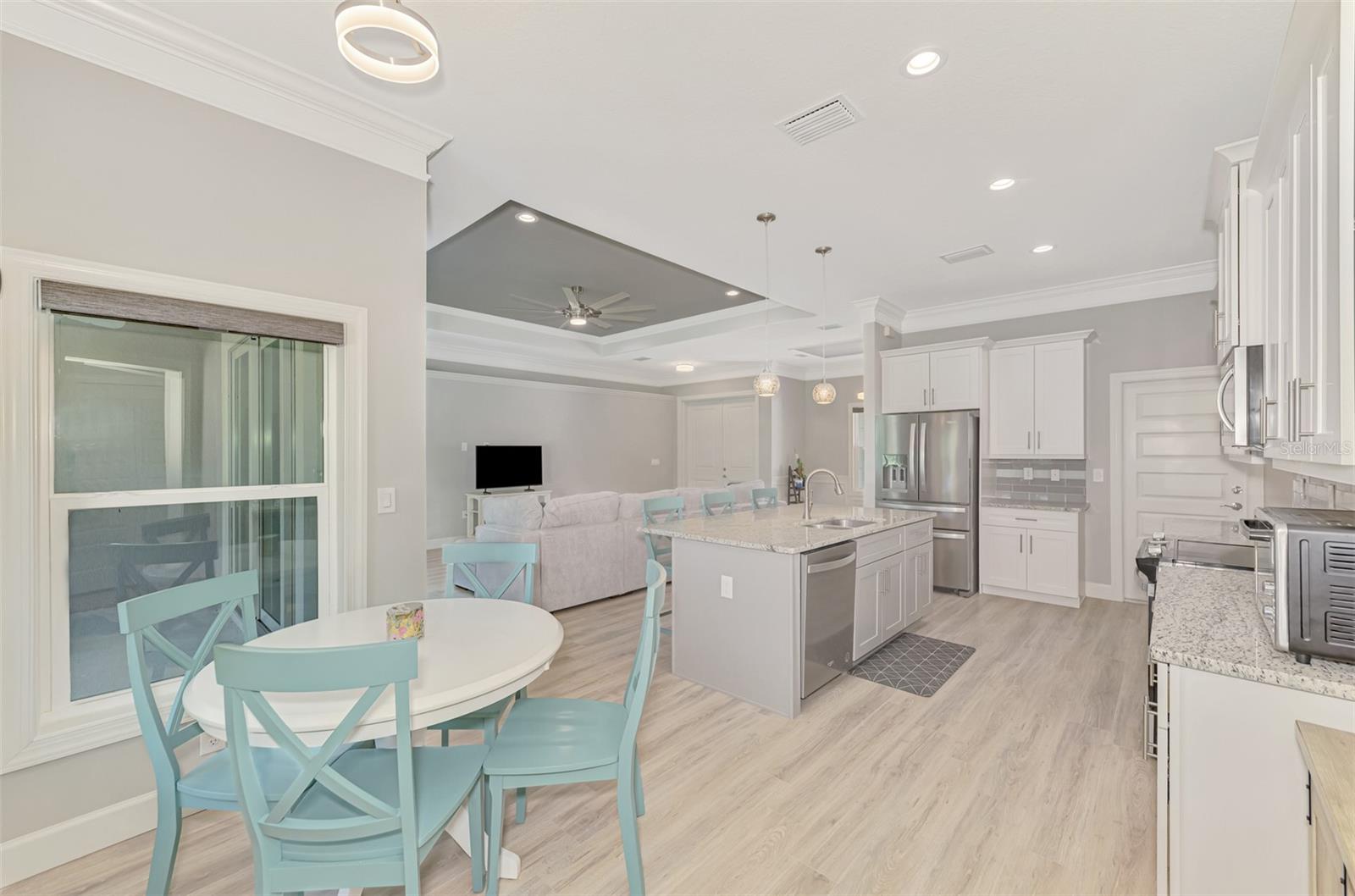 You have found your Dream Home! This Custom Built Home has everything you are looking for in your New Home. From the minute you walk through the double doors, you will feel right at home. The open concept, split bedroom floor plan features Luxury Vinyl Plank Flooring throughout, Impact Windows and Doors, Coffered Ceilings, Crown Molding, 4.5" Baseboards, Upgraded Cabinets and Countertops in the Bathrooms, Kitchen and Laundry Room, Hunter Douglas Blinds, Ceiling Fans, New Washer and Dryer. Your Primary Bedroom has Recessed Lighting, an Oversized Walk-in Closet, an En Suite Bathroom with Private Water Closet, Dual Vanities and Glass Enclosed Shower. The custom chef's kitchen is well appointed with white shaker cabinets, granite countertops, stainless steel appliances, expansive breakfast bar, an eat-in breakfast nook and closet pantry. There is plenty of space in this home to host gatherings in the main living area of this home. The kitchen is open to the Family Room and Dining Room, featuring high ceilings and a 3 panel sliding glass door leading out to the covered patio and tranquil backyard. The two spare bedrooms have built-in closet and ceiling fans. The shared second bathroom is outfitted with a tub with shower and granite countertops. There is a full light door leading out to the lanai adjacent to the second bath. This home features a designated laundry room with a stainless steel utility sink, storage cabinets above the washer and dryer as well as a two car garage. Walking distance to Glenallen Elementary School, a short drive to shopping and Gulf Beaches. Make this your home today!